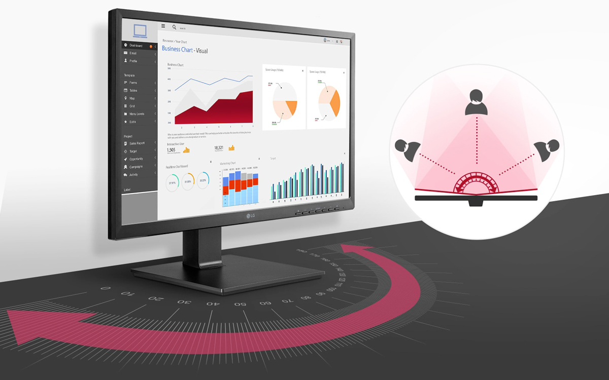 Adaptez votre espace de travail à vos besoins grâce aux nombreux réglages de l'écran : rotation à 90°, hauteur et inclinaison. Le support One-Click permet d'installer le moniteur aisément afin de créer rapidement votre espace de travail optimal.