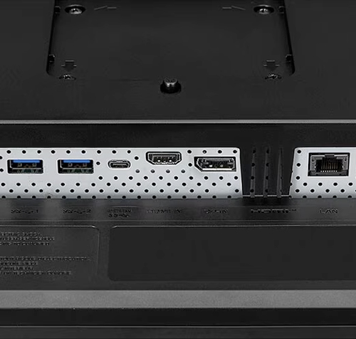 En plus de l'USB-C, l'écran LG dispose d'entrées vidéo répandues, HDMI et DisplayPort. En outre, l'écran est équipé de deux ports USB 3.0, d'une prise RJ45 pour vous connecter à un réseau filaire et d'une sortie casque.